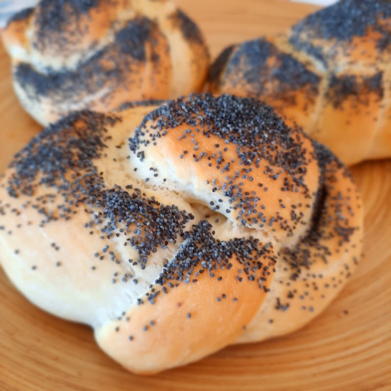 Le-am acoperit cu un servet curat si le-am mai lasat sa creasca 10 minute. Intre timp am dat drumul la cuptor la foc potrivit. Dupa 10 minute, am uns japonezele cu putina apa (cu lapte, daca nu e post) si le-am presarat cu mac, adunat din gradina mea- e mult mai marunt decat cel din comert.