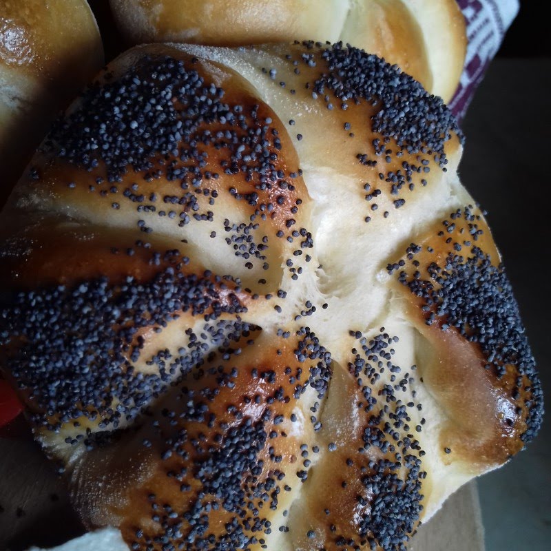 Cautand o reteta de chifle Kaiser, am gasit un video cu aceasta reteta, care mi s-a parut foarte tare. M-am apucat imediat sa le fac si am tot exersat, pana cand am inceput sa le fac binisor. Mi-a placut faptul ca pot sa le fac cu mac sau sare deasupra ( ori susan, dupa gust), desi nu aratau ca chiflele pe care eu le cumpar de la Lidl si care imi plac atat de mult - acelea foarte plate, cu taieturi in forma de elice deasupra. Problema e ca, de cand cu aceasta pandemie de Covid-19, am cautat sa fac paine acasa, ca sa nu mai cumpar, evitand astfel o contaminare cu virusul. Numai cand vedeam ca painea era lasata fara punga in galantar, la discretia oricui, sa puna mana pe oricare din ele, ma apuca grija! Nu stiu cat imi e frica de moarte, dar imi e frica sa nu ma chinui prea mult. Dar parerea mea e ca e mai bine sa previi, decat sa repari ce s-a stricat. Asa ca am renuntat sa mai iau paine. Nu am gasit drojdie la inceputul pandemiei, pe cand eram obligati sa stam in casa, ci doar dupa vreo luna. In acest timp am facut paine cu maia salbatica si paine cu apa cu drojdie de mere fermentate, asa ca m-am descurcat. Dupa un timp, a inceput sa se mai gaseasca drojdie si am cumparat un pachet intreg de drojdie proaspata, pe care am taiat-o si am pus-o in congelator, asa cum m-a invatat vecina mea, doamna Petre - fie-i tarana usoara! Am inceput sa fac si paine la masina electrica, dar si chifle. Asa mi-a venit ideea sa fac chifle Kaiser, mai ales ca nu aveam incredere sa iau chifle de la Lidl si tare pofta imi faceau atunci cand le vedeam in raft, atunci cand ma duceam la magazin. Sigur ca la inceputul pandemiei nici la Lidl nu au mai vandut paine neambalata, pentru ca nu o mai cumpara nimeni, chiar daca o mai puneau ei in pungi de hartie - ca un hatar, sa ne imbie sa o cumparam!